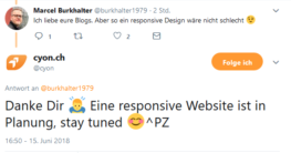 Arbeitet der Webhosting Anbieter Cyon womöglich an einem neuen Internetauftritt? Die Seite von Cyon ist – entgegen der heutigen Erwartungen – nicht responsive. Wer also über sein Smartphone oder Tablet auf die Webseite zugreift, kann die Webseite nur mehr schlecht als recht bedienen. Doch arbeitet Cyon vielleicht schon an einem neuen Webauftritt? Kürzlich veröffentlichte Tweets […]